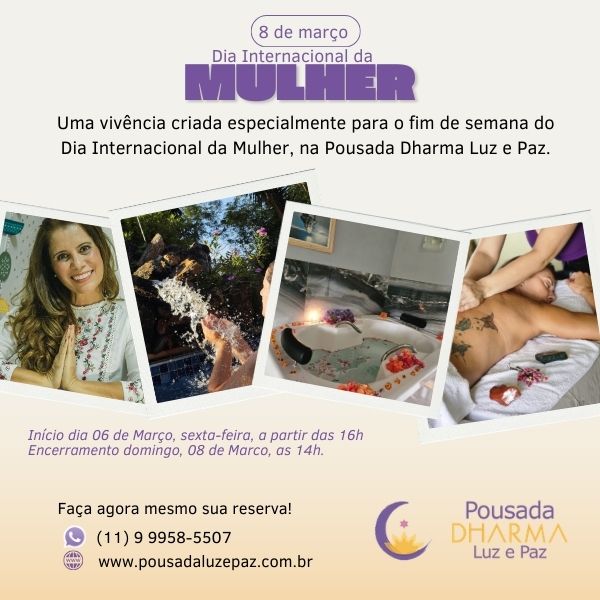 Uma vivência criada especialmente para o fim de semana do Dia Internacional da Mulher, na Pousada Dharma Luz e Paz.